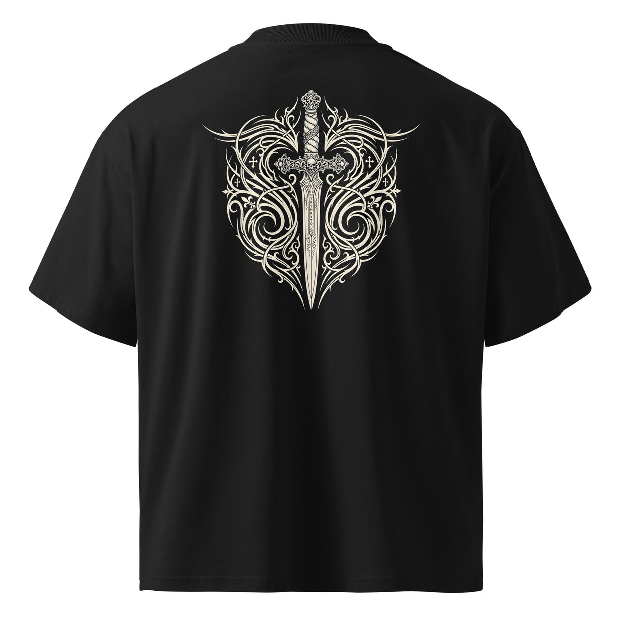 Oversized fit meets dark aesthetic streetwear. This organic tee features dropped shoulders and a high neck collar for that effortless urban look. Bold graphics, relaxed silhouette, everyday versatility.